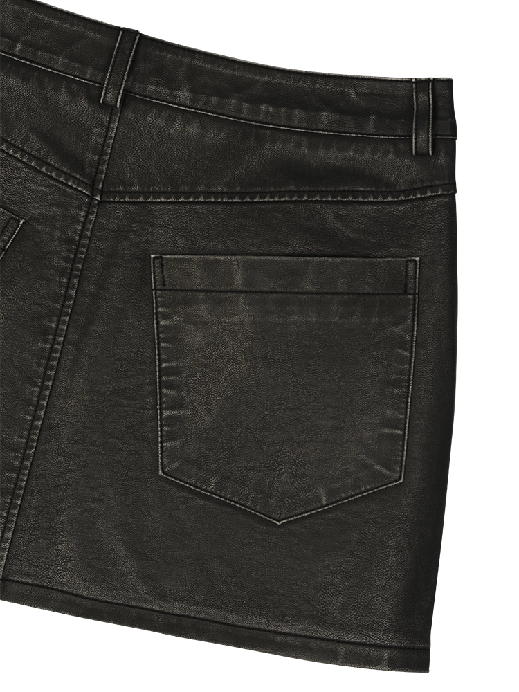 W) VINTAGE LEATHER WRAP SKIRT BLACK