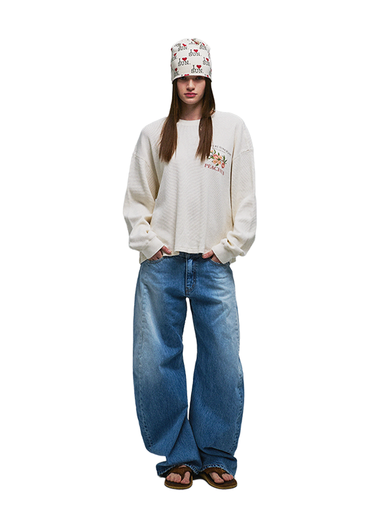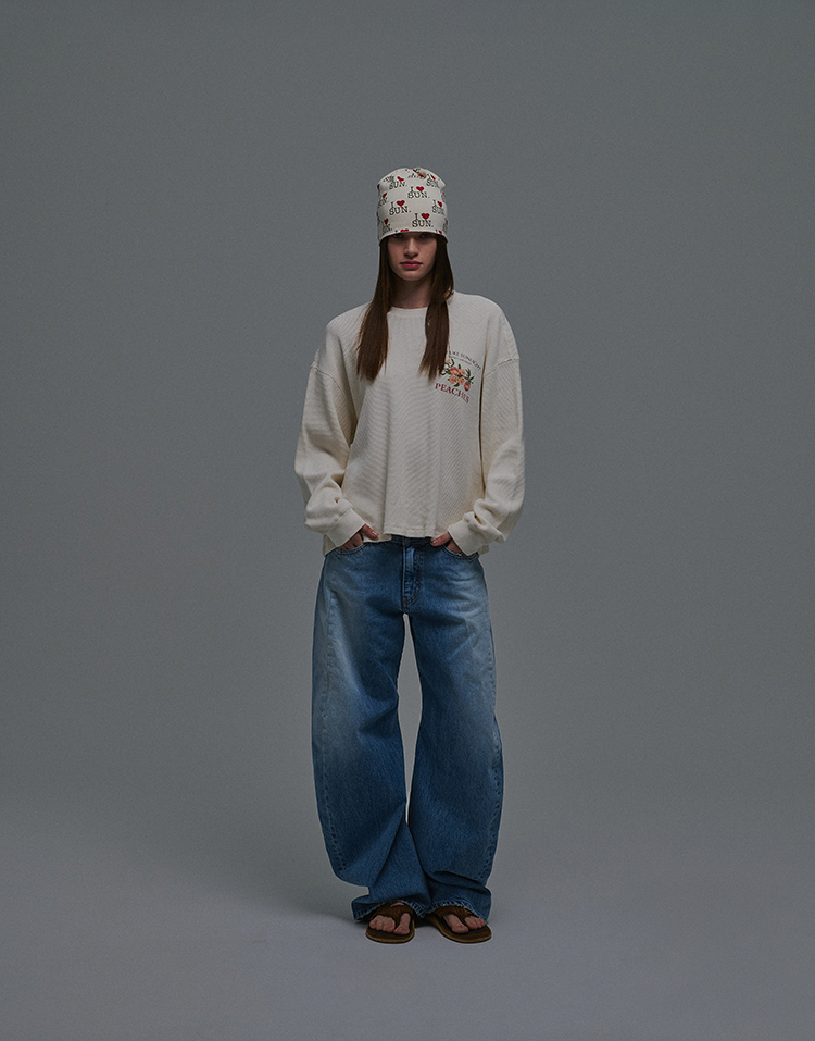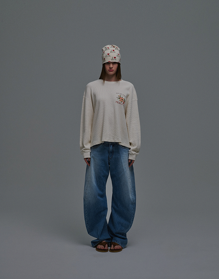 SUN PEACH WAFFLE LS TEE IVORY