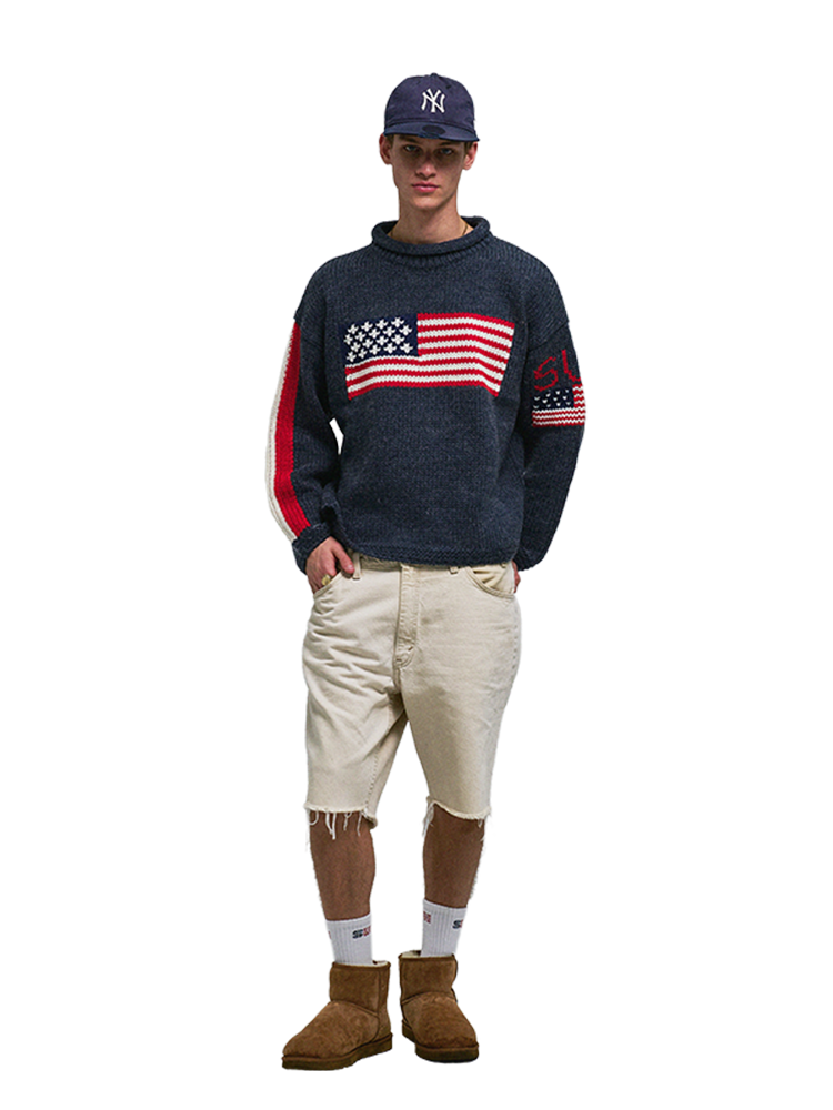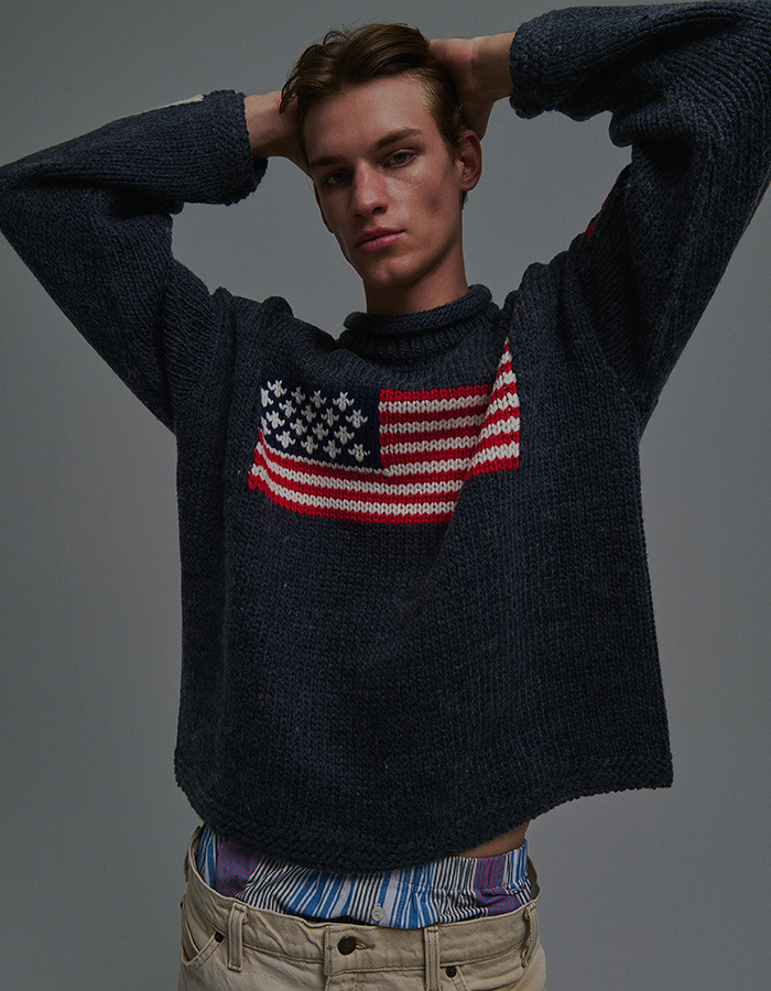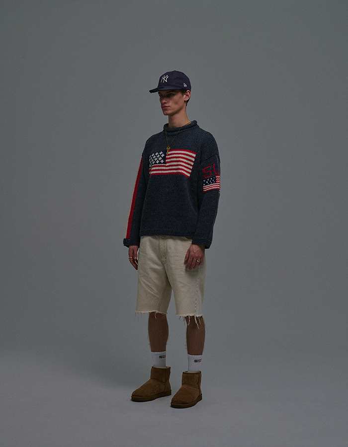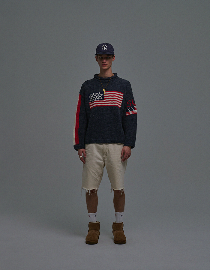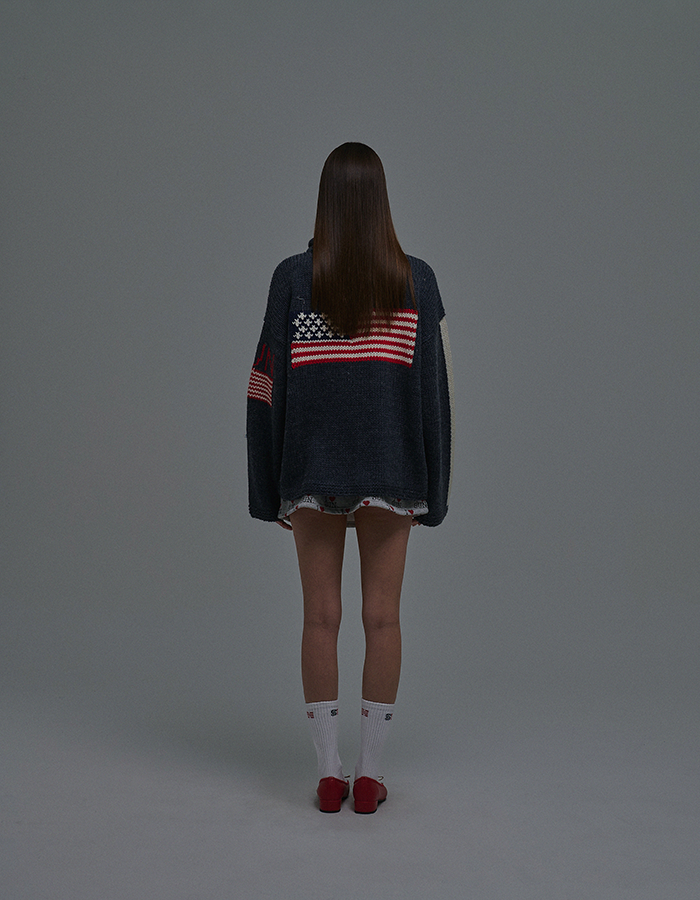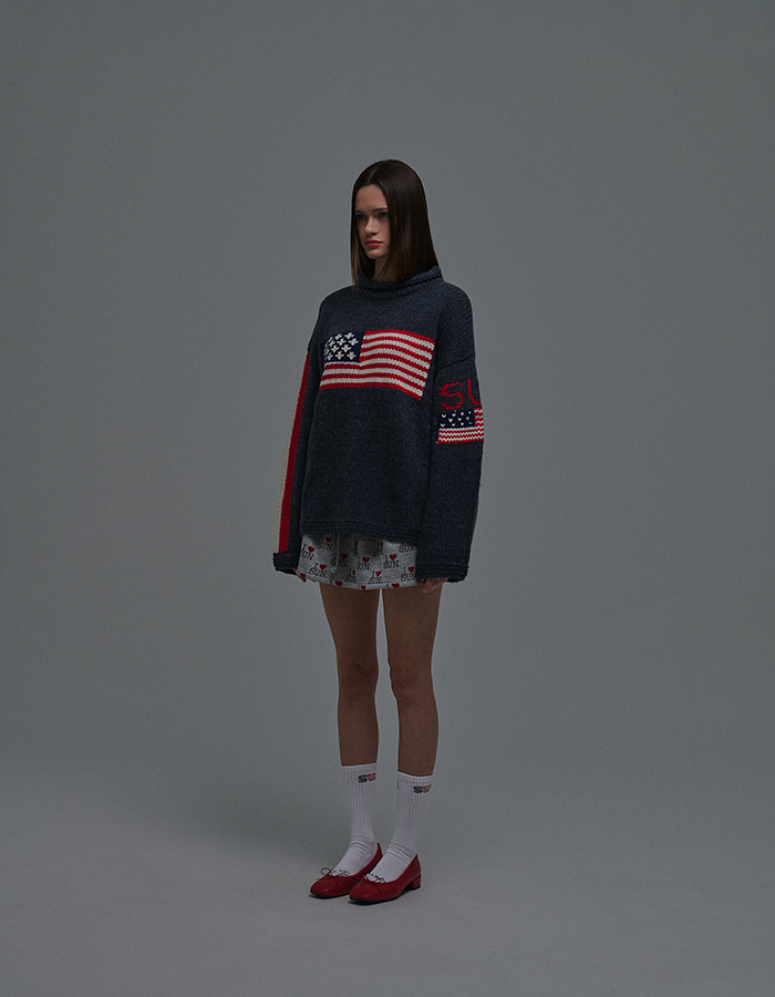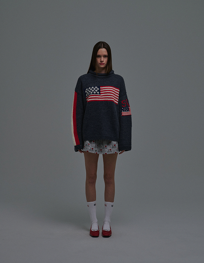 (3/12 순차 출고) SUNDAY FLAG KNIT SWEATER NAVY